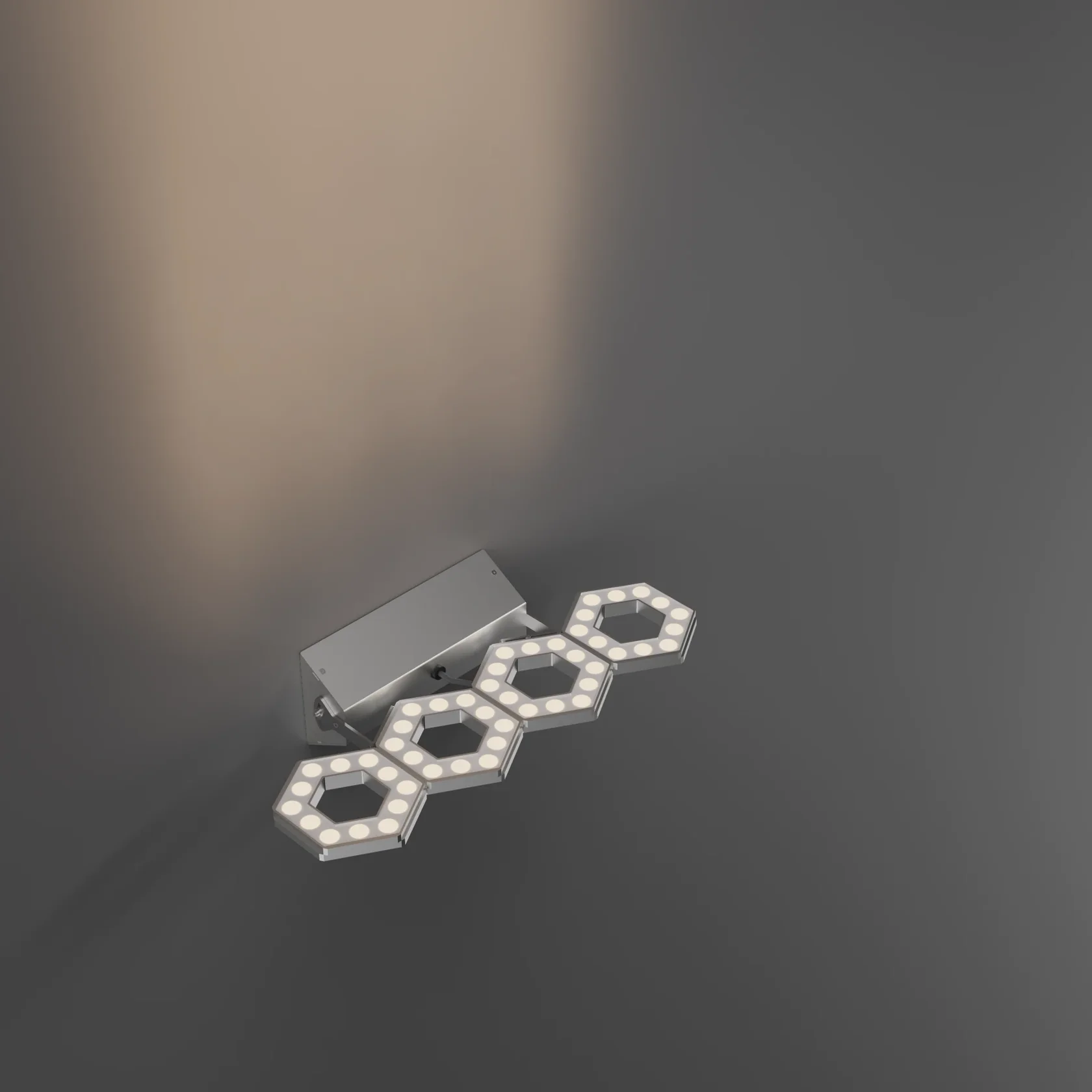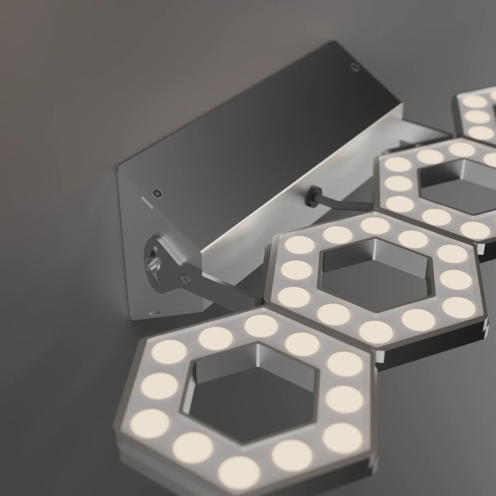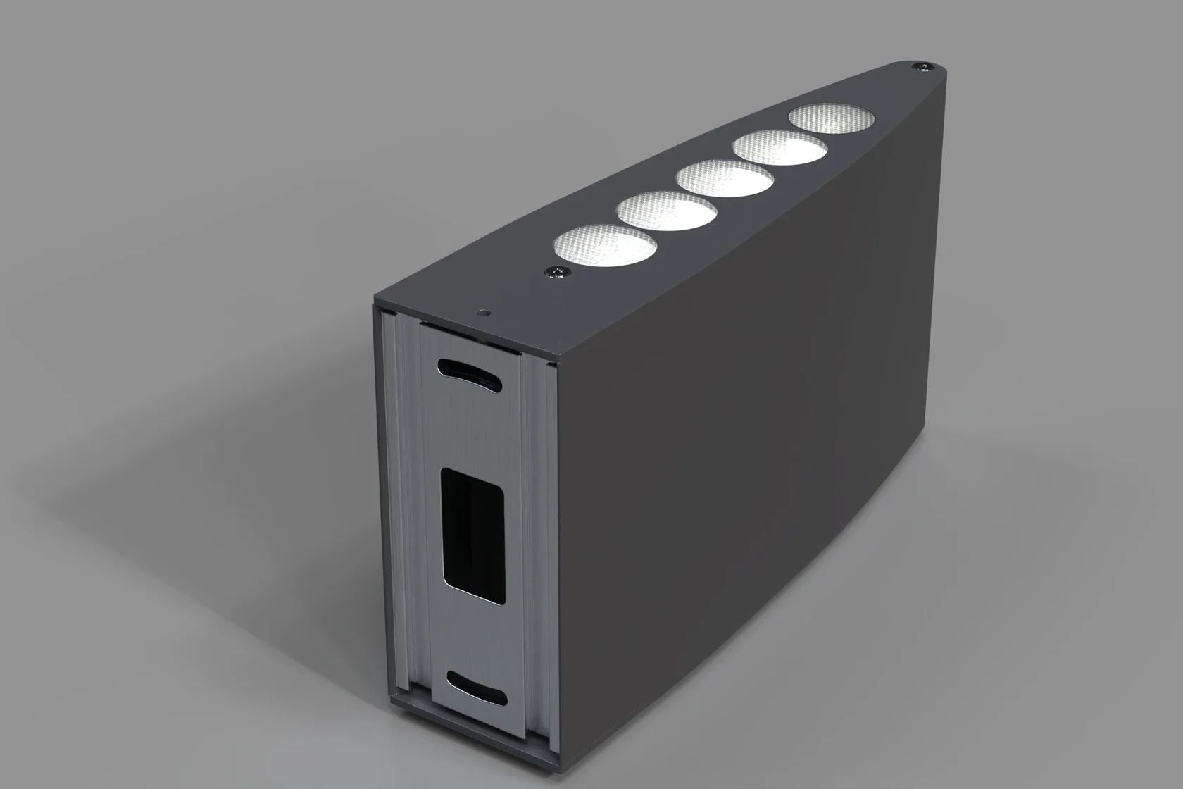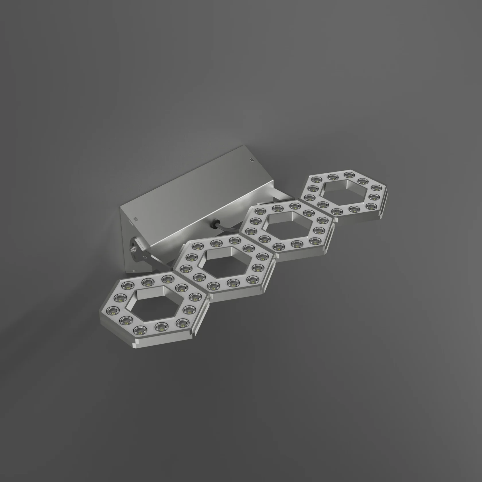 Представляет собой модульный светильник, состоящий из герметичных ячеек в форме сот, что обеспечивает надежность и удобство сборки. Оснащён основанием для подключения к сети 220 В и крепления к несущей конструкции. Идеально подходит для создания акцентного и заливающего освещения в архитектурных проектах. Используется для локального и акцентного подсвета фасадов зданий, подчеркивая их уникальные детали и создавая выразительную световую атмосферу.
