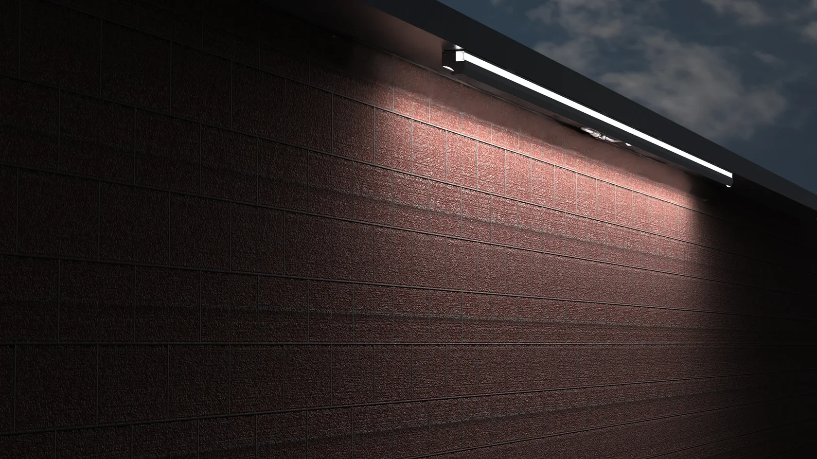 Линейный светильник для создания равномерного скользящего освещения поверхностей средней высоты, для функционального освещения первых этажей.