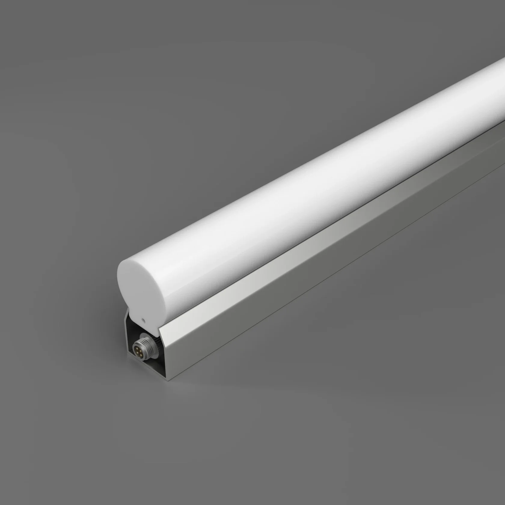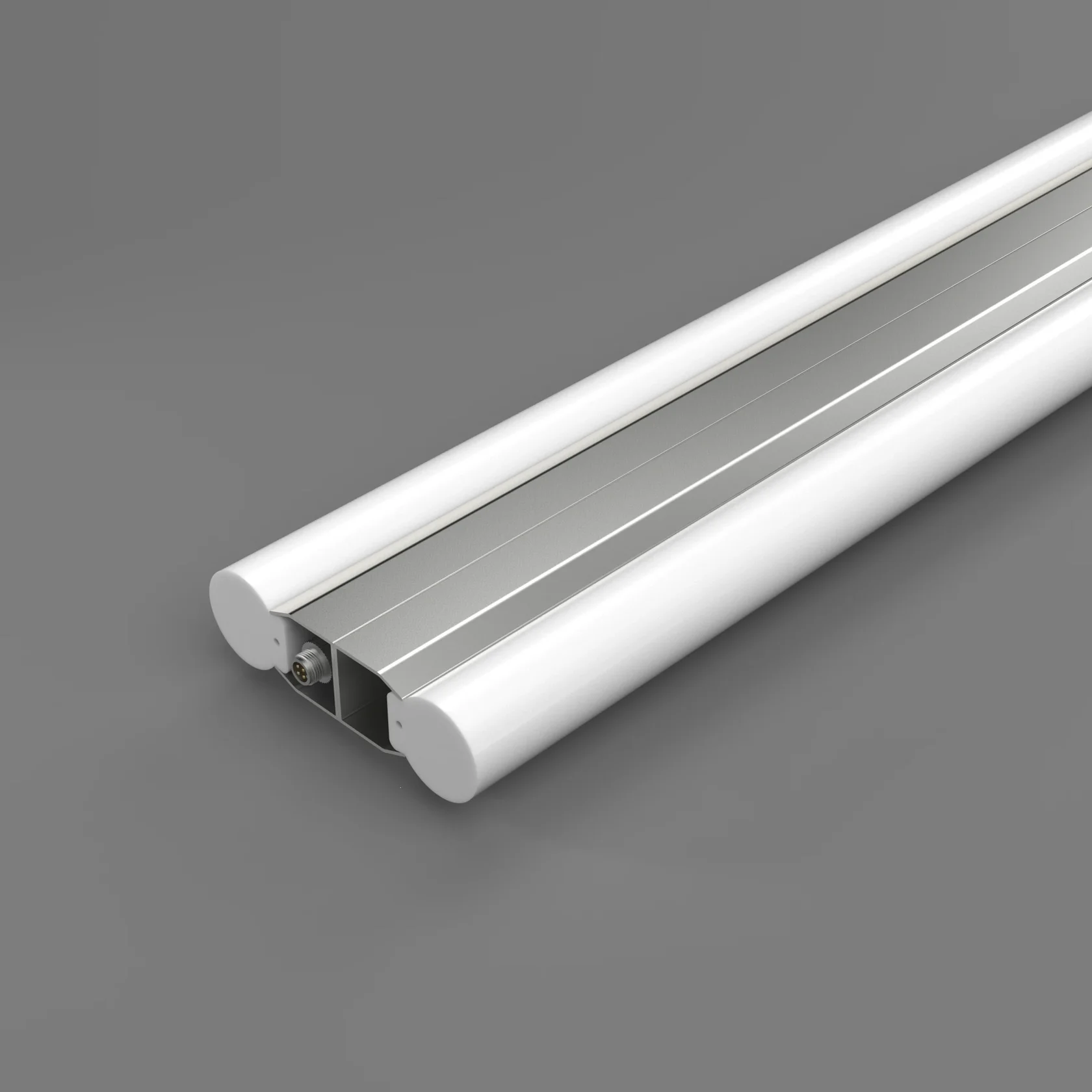ОПИСАНИЕ Конструктивно представляет собой герметичную трубку из поликарбоната, диаметром 40мм и длиной от 250мм до 3000мм и основание в виде алюминиевого профиля. С каждого конца трубки имеются выводы с влагозащищенными разъемами для коммутации с блоками питания и между собой. В светильник смонтированы источники света – светодиоды средней мощности типа SMD2835.