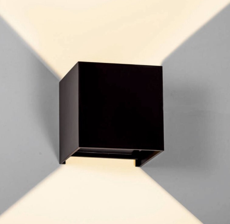 Технические характеристики для всех светильников: Цвет свечения: теплый белый 3000К / нейтральный белый 4000К / холодный белый 6000К Входное напряжение: 100-240V 50/60Hz Мощность: 6Вт (СОВ 2*3Вт Bridgelux) Световой поток: 620lm Угол луча: регулируемый, макс.100 гр. Класс защиты: IP65 Тип монтажа: Настенный накладной Корпус: Алюминий Цвет корпуса: Черный / любой по запросу (по RAL) Размеры нетто/брутто: 100*100*100 мм / 107*105*110 мм Вес нетто/брутто: 609г / 663г